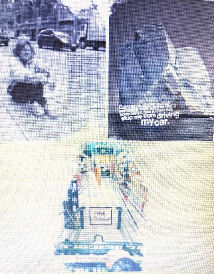 Through out these three pages, it seems that social groups such as Capitalists are seen as greedy and only caring for themselves for example the Adbuster image with the iceberg suggest that people are more likely to blame natural events such as the weather on the ice caps melting and not realise or change their actions to help mitagate the problem. Also the image with the women on the street further talks about how our greatest fear is the collapse of food production due to escalating prices, further linking to capitalists and capitalism as profit before people as if prices of food we’re to rise wealthy families could able to cope however poorer families would be at a disadvantage, which is shown as the women seems to homeless. Adbusters is quite straight forward with their approach and statements as they talk about issues such as hotter summers increasing the risk of the polar ice caps but also telling people that by ignoring your actions such as using your car which increase greenhouse gases and climate change you are contributing to this disaster and making it worse, however Abuster make be seen as complex as they have phrases and images they might want their readers to decode and understand secret messages.