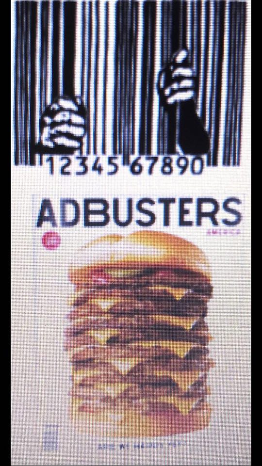 Adbusters is a socialist activist magazine that tends to satiries capitalist society/ western world which we live in, they seek to condem and highlight social and political issues which mostley revolves around consumers and capitalist belfiefs. One way in which Adbusters challenges dominant ideologies is through culture jamming , for example one image is shown to be a barcode however there are two hands which appear to be grabbing onto the lines and the serial number below signifying jail and the idea of being ‘behind bars’ the image suggests that we ourselves are criminals to capitalsim as they have a hold of us , the use of Adbuster including the serial number it to show that we are just another set of numbers and subjects to them as all they care for is for the money you provide towards their companies reinforcing Howard’s theory that ‘Design is not an abstract theoretical discipline as it produces tangible artifacts, expresses social priorities and carries cultural values’. Also linking to one of Abusters magazine covershowing us a abnormaly large burger portraying the capitalist idea of needing and wanting more, the image is followed by the phrase “Are We Happy Yet?” implying that the more you have and the more you ask for something will not result in happieness , further questioning the idealisation of requiring products it such a large quantity. However this image may also link to how mass companies such as Mcdonland’s offer large portions of food to an individual while there are people who are less privileged in low income and third world countries and often suffer from famines and droughts. Giving awareness to the readers of Adbusters that famines and providing for the less fortunate than us who are consumed by capitalism and how these issues should be social priorities and how the more we have will not give us true happieness or success. Abusters is a left wing magazine therefore their main intention is to try and abolish social inequality and capitalist ideologies of ‘more equals happieness’ therefore by suberting these ideas and challenging them it gives the readers and the public awareness that the quantity and quality of products or items doesn’t define you as a person and we should all be equal.