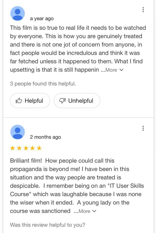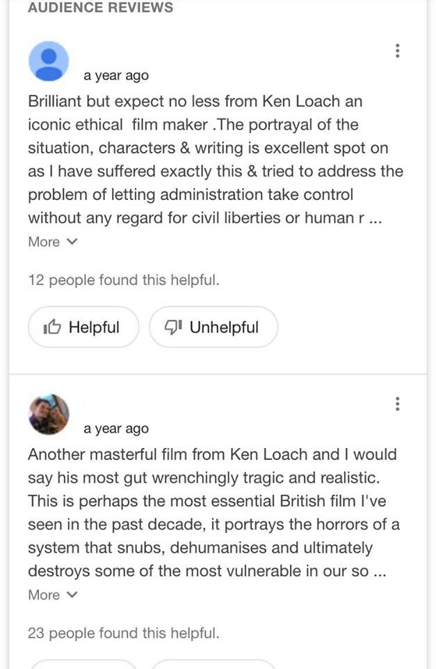 I think the film would appeal to an audience who resonates with the film, meaning the have been or are currently going through the same situation as Daniel Blake or Katy. This audience may be really touched by the film and feel relieved that someone is speaking out about the mistreatment and the brutality that occurs in the benefits system; the film can be seen as their voice and can help them with their story.
