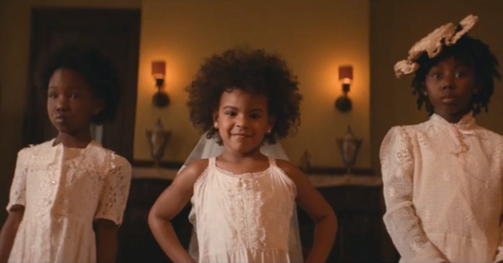 Throughout the video references to black communities an culture are shown, for example there is a scene with Beyonce’s daughter she is seen embracing her natural hair, which is linked to Andrew Goowin’s theory that links the lyrics to the visuals because after that clip is shown Beyonce sings “I like my baby hair with baby hair and Afros”. This sends a message to those who criticized Beyonce for not going with the Eurocentric beauty standers and embracing her ethnicity, it also send a clear message to black women and girls all around the world that naturally curly and kinky hair is beautiful. Beyonce also sings ” I like my Negro nose with my Jackson 5 nostrils” this lyric illustrates the pride in African-American features and shuts down any critiques on black features.